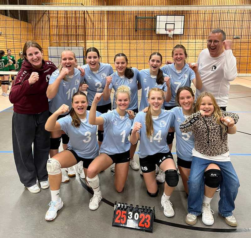 Das neu zusammengestellte Team mit ihren jungen Coaches Greta Kimmel und Lara Joos zeigten im ersten Spiel gegen den TSV Ellwangen eine tolle Leistung. Die Spielerinnen setzten den Gegner mit starken Aufschlägen von Anfang an unter Druck und konnten durch ein tolles Zusammenspiel in der Annahme, dem Zuspiel und dadurch erfolgreichen Angriffen schnell Punkt um Punkt für sich entscheiden.